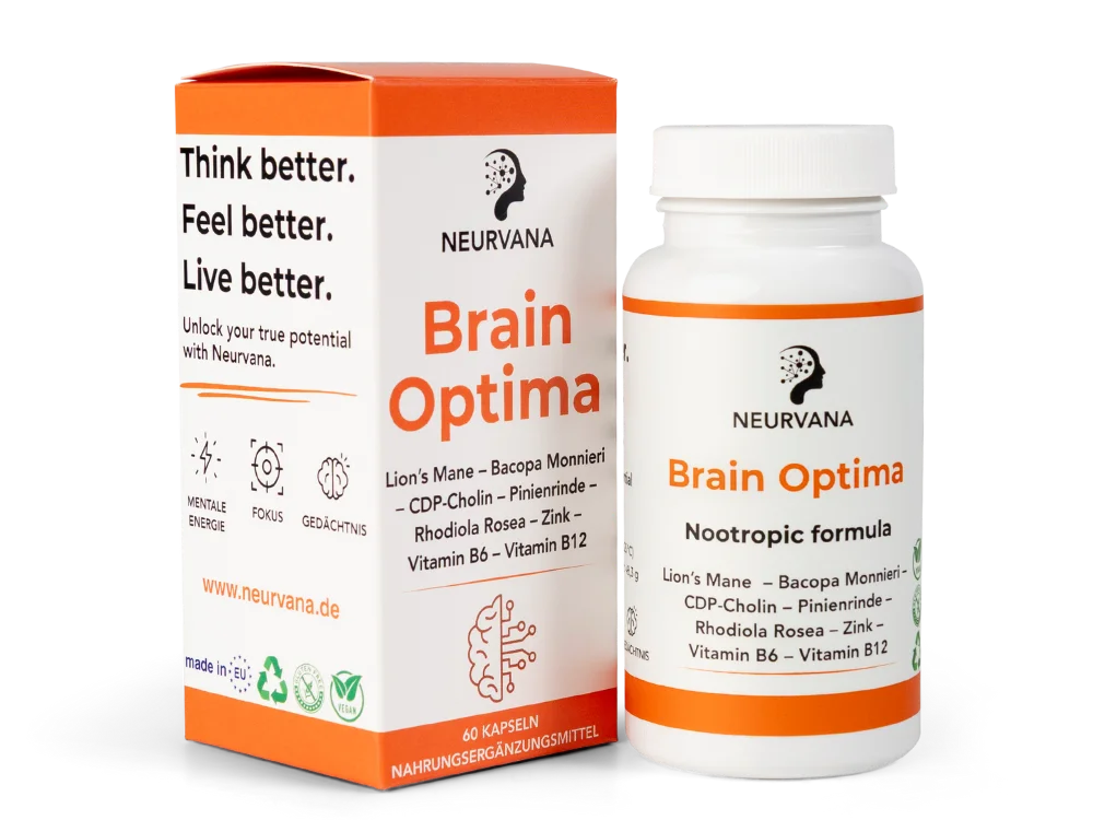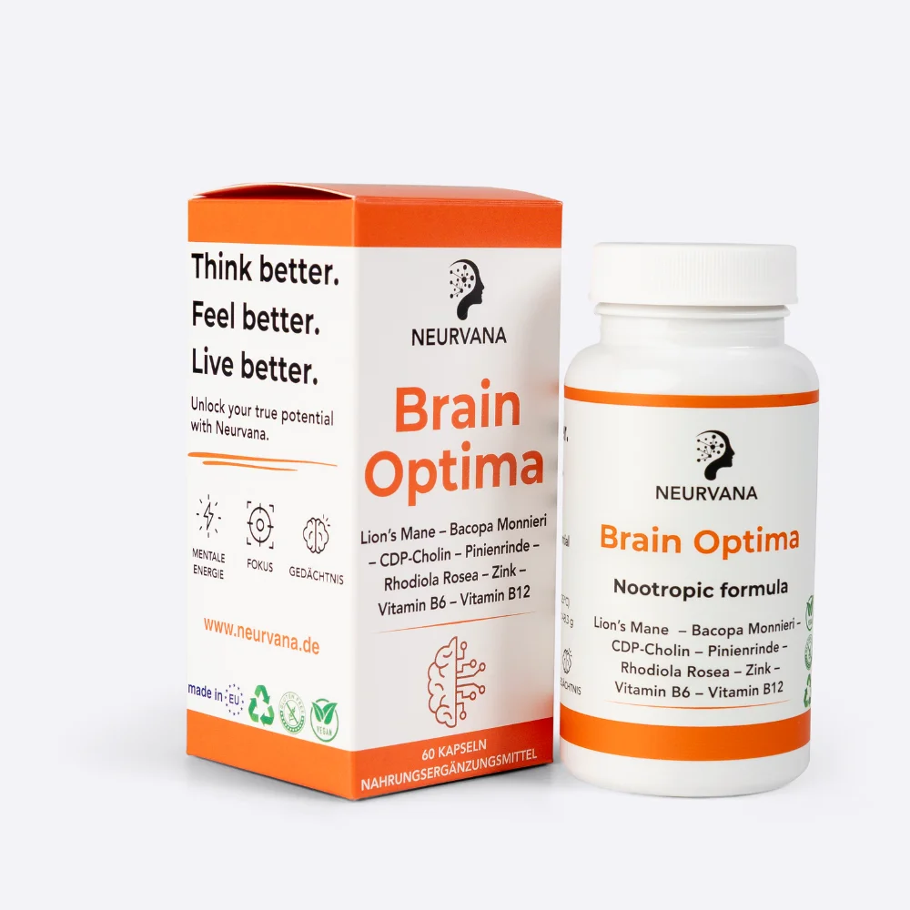Brain Optima kombiniert acht wissenschaftlich untersuchte Nootropika in klinisch wirksamen Dosierungen, sorgfältig formuliert, um mentale Klarheit, Gedächtnis und Fokus zu verbessern.